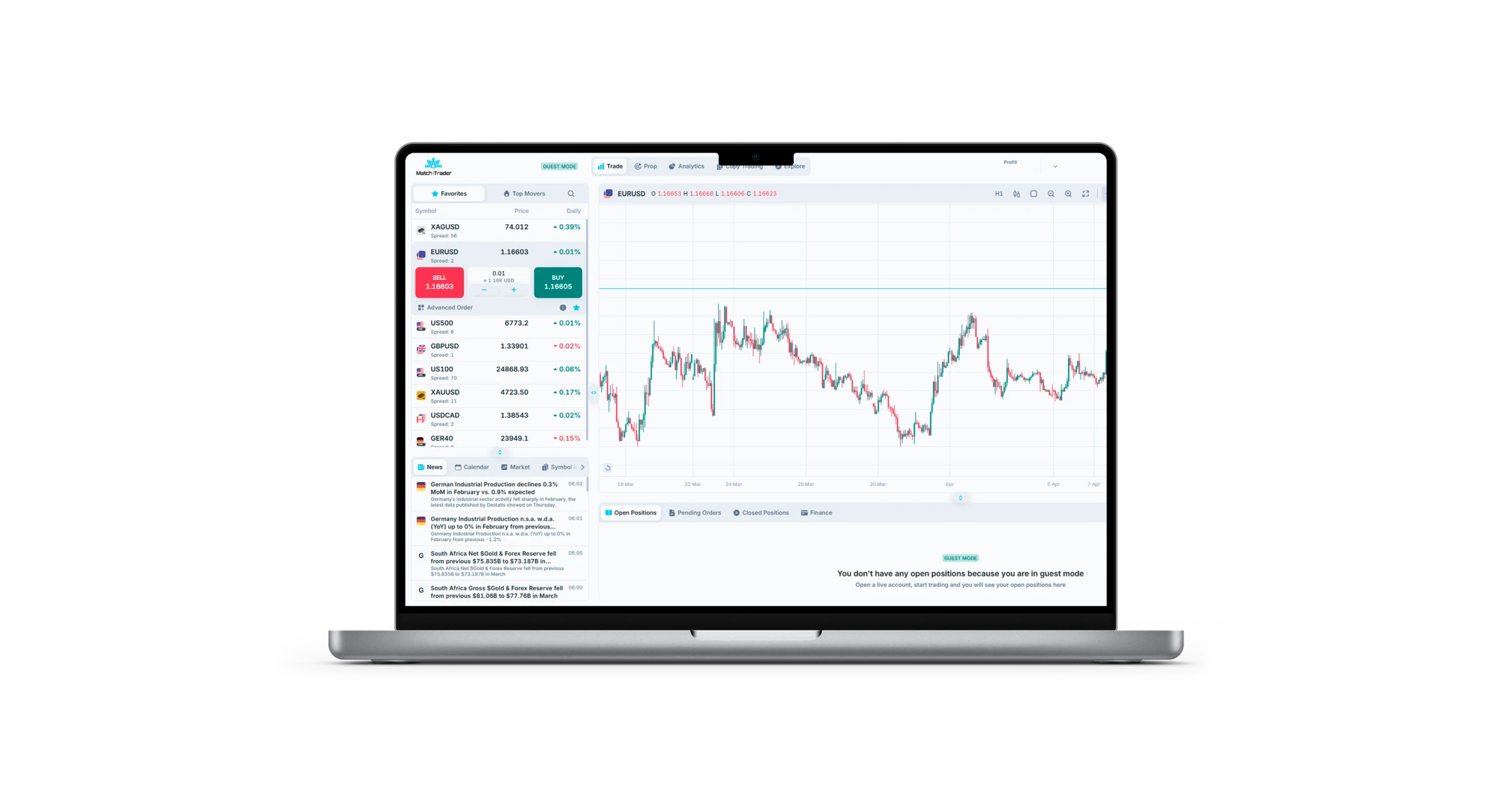 Match Trader platform interface on laptop