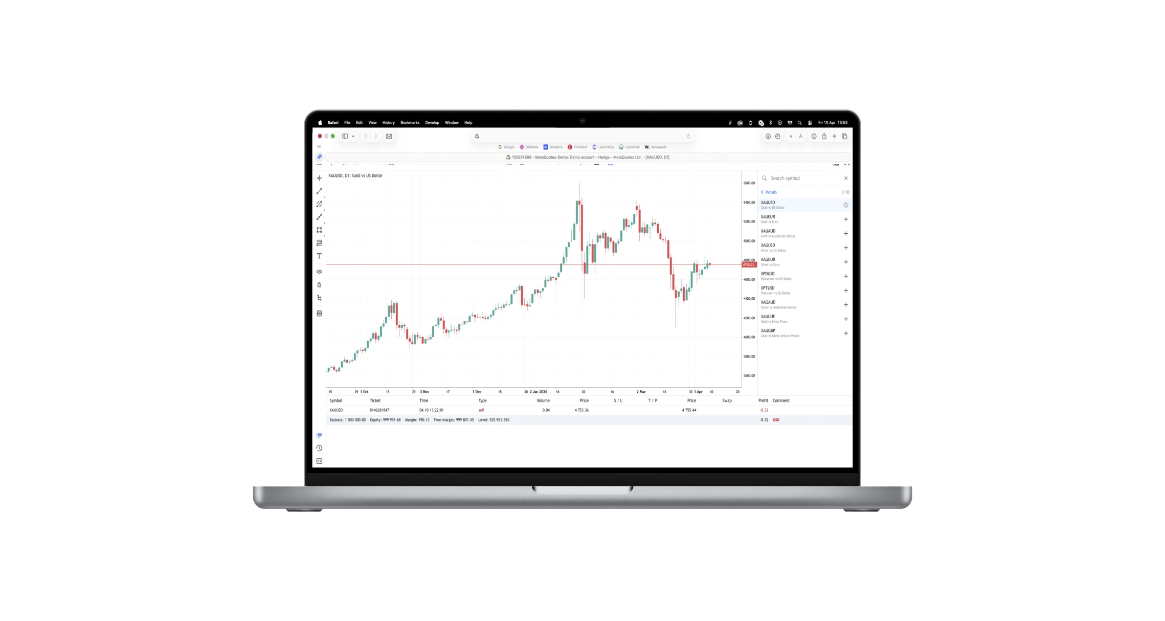 MetaTrader 5 platform interface on laptop